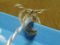 In my case, first I loosely tied short strings to the four holes to make small loops at the corners of the tray, and I ran another string through each loop and tied one end of the string to the other to make a long loop. When you hang the tray from your neck, adjust the tray so that it is kept horizontally. The lengths along the string from your neck to each corner are adjusted to the best lengths.